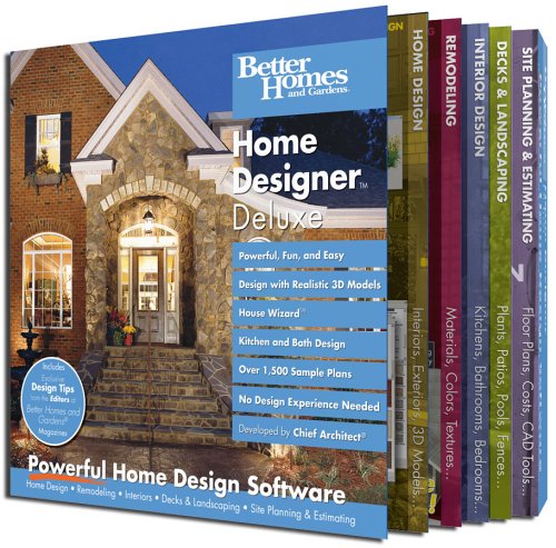 Features powerful building tools like automatic roof generation, dormers, stairs, framing, foundations, and Plan Check; import photos for realistic background views Choose from over 1,500 sample floor plans; design and visualize with 3D Models and Virtual Tours Deck Designer lets you design single or multi-level decks; deck foundations automatically generate to match sloped lots All-in-one design solution based on the top-rated Better Homes and Gardens Home Designer; for interior, exterior and landscape design projects Choose from over 1,200 plants with the Plant Chooser; use Sprinkler Designer to lay out sprinkler zones quickly and easily