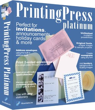 Easily layout your stationery, add graphics, borders, photos and text, includes 13 original fonts. Advanced features include spell check, one-pass envelope printing, floating images, text boxes with full justification and more. Keep track of RSVP count, guest list, gifts, even thank-you notes. Store all your contact names and addresses in the built-in address book. Use with any printer-compatible stationery, including folded cards, envelopes and place cards.