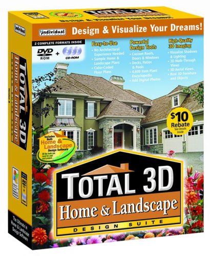 Visualize shadows and lighting; 3D walk-through and aerial views Custom roofs, doors, and windows; decks, patios, and pools Design suite with 35 integrated home and landscape design programs Color-coded floor plans; add digital photos; real 3D furniture and objects Easy, yet powerful 3D design tools; no architectural experience needed